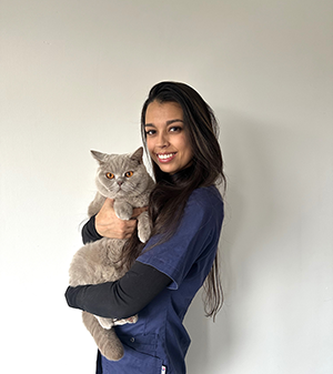 Hoi, ik ben Sanny Smits en ben begin 2020 afgestudeerd aan de Universiteit Utrecht. Ik ben geboren en getogen op het zonnige eiland van Sri Lanka. Ik ben naar Nederland gekomen om mijn passie voor het diergeneeskunde na te gaan. Mijn interesses zijn breed, ik help graag alle dieren van dwerg hamsters tot aan grote honden. De vele ervaren dierenartsen, hecht team en uitgebreid diagnostiek mogelijkheden hebben mij naar Dieren getrokken. Thuis zonder dieren zou ook niks voor mij zijn, ik heb daarom 2 katers thuis die onwijs stout kunnen zijn maar af en toe ook heel lief.